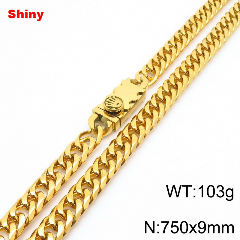 750x9mm Shiny Link Chain Necklace With Unique Clasp Men Women Stainless Steel 304 Jewelry Gold ColorWholesale Price: