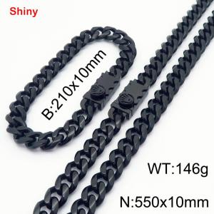 - Fashionable stainless steel polished Cuban chain square crown buckle bracelet necklace two-piece set
