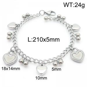 5mm Beads Link Chain Stainless Steel Bracelet With Heart Pendant Silver ColorWholesale Price: