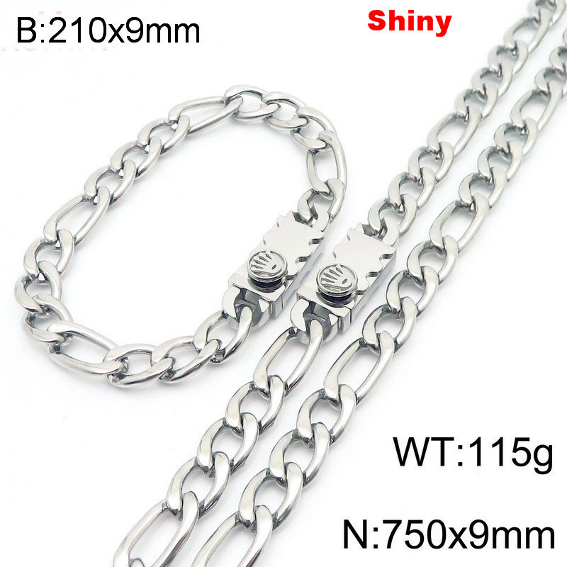 210x9mm Bracelet 750x9mm Necklace Silver Color Stainless Steel Shiny 3:1 NK Chain Jewelry Sets For Women MenWholesale Price:
