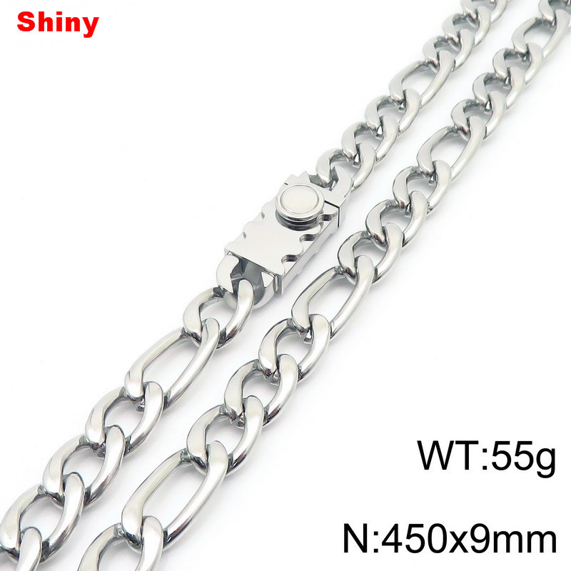 9mm 50cm minimalist polished plain chain toothed stainless steel square buckle 3:1 Figaro necklaceWholesale Price: