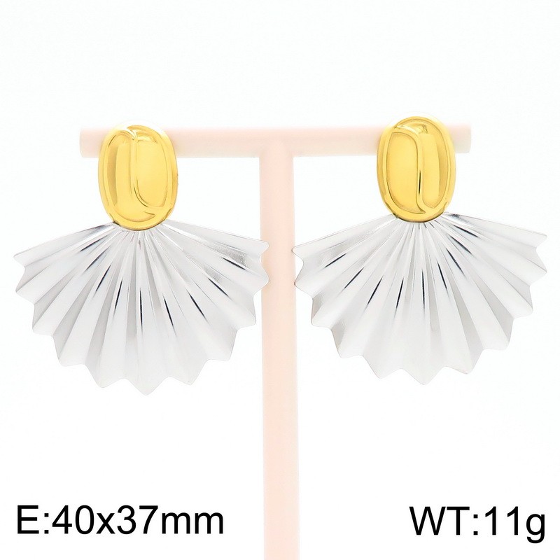 - Fashionable and personalized Ins style stainless steel creative oval earrings with shell fan-shaped charm two tone earrings