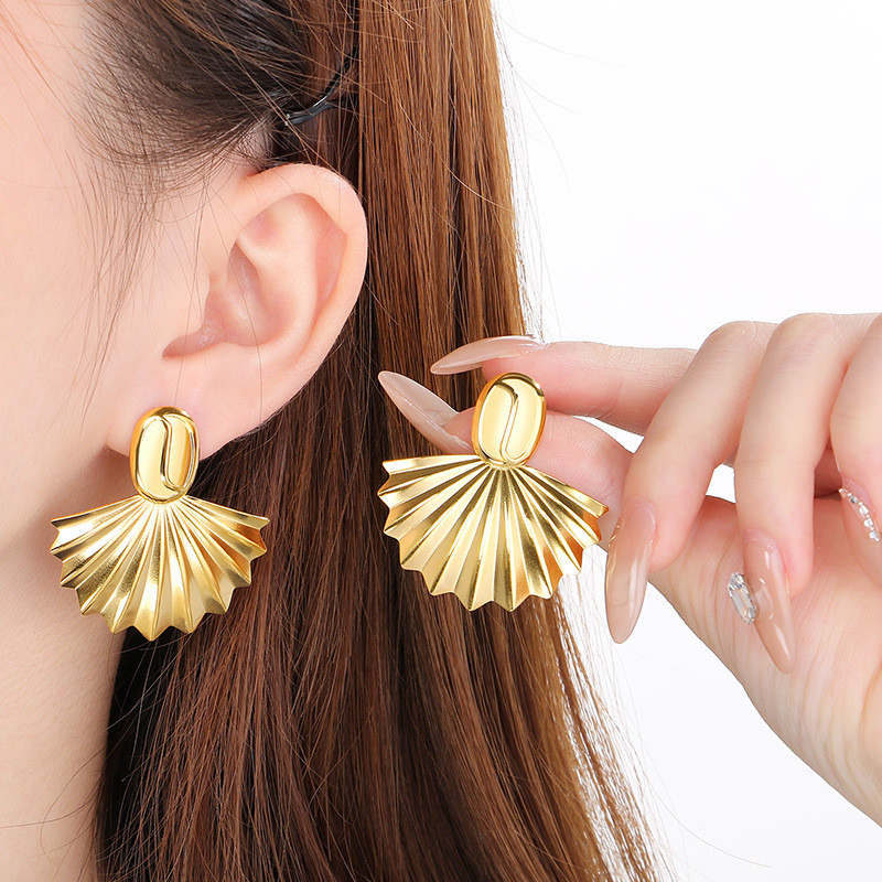 Fashionable and personalized Ins style stainless steel creative oval earrings with shell fan-shaped charm two tone earrings
