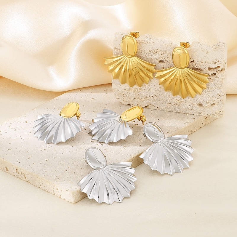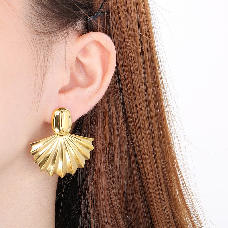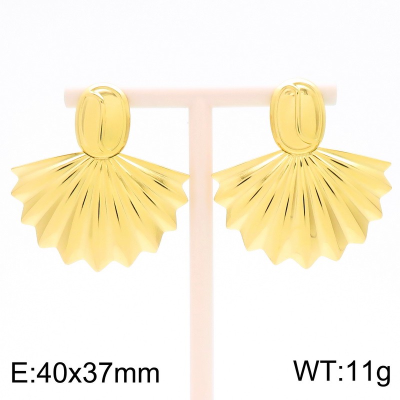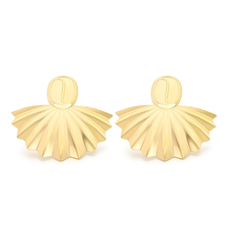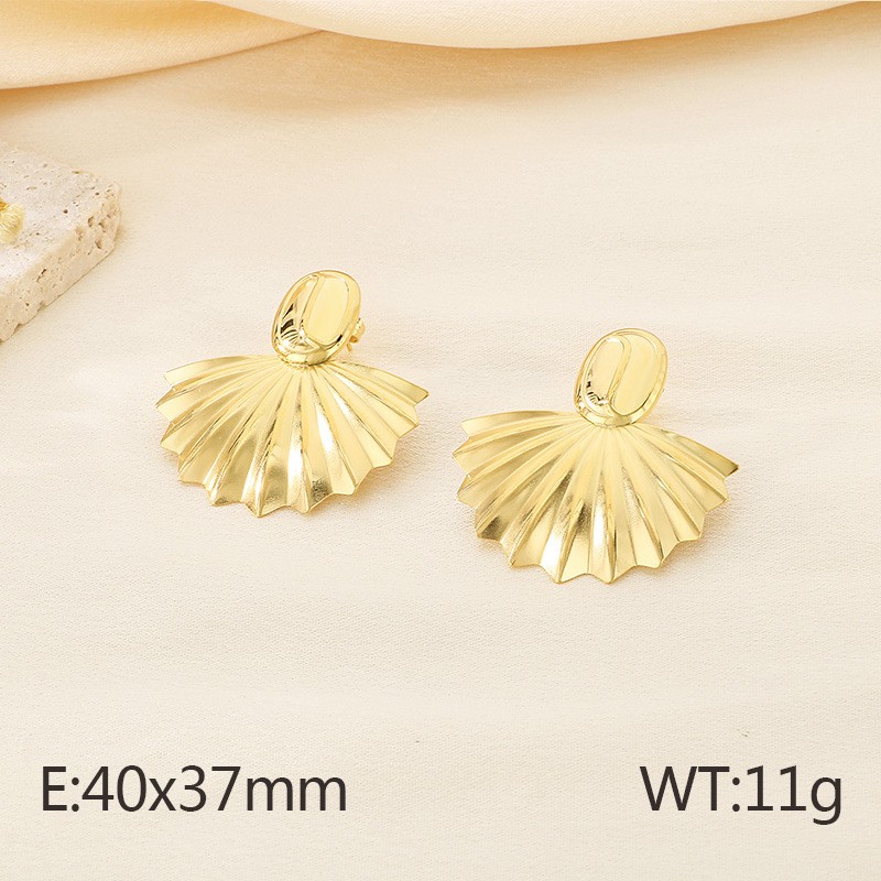 - Fashionable and personalized Ins style stainless steel creative oval earrings with shell fan-shaped charm gold earrings