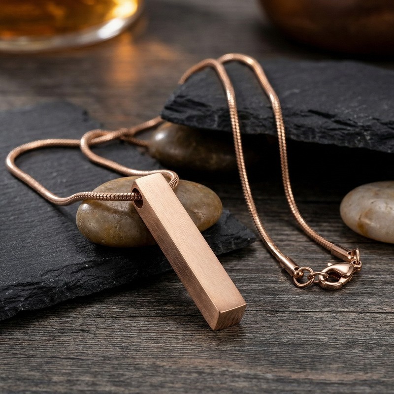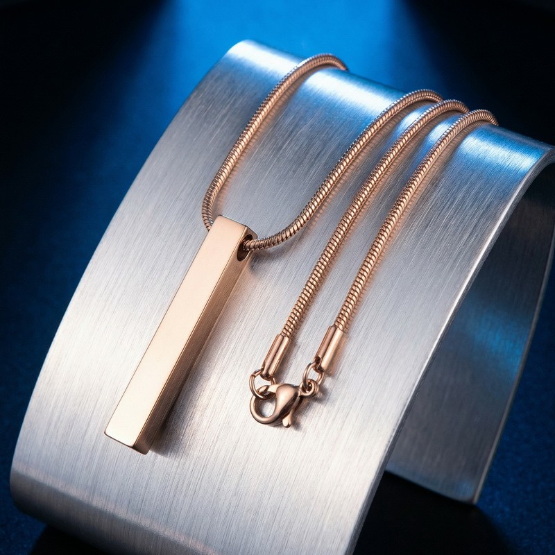 Fashionable and personalized stainless steel snake bone chain hanging rectangular column accessories temperament rose gold necklaceWholesale Price: