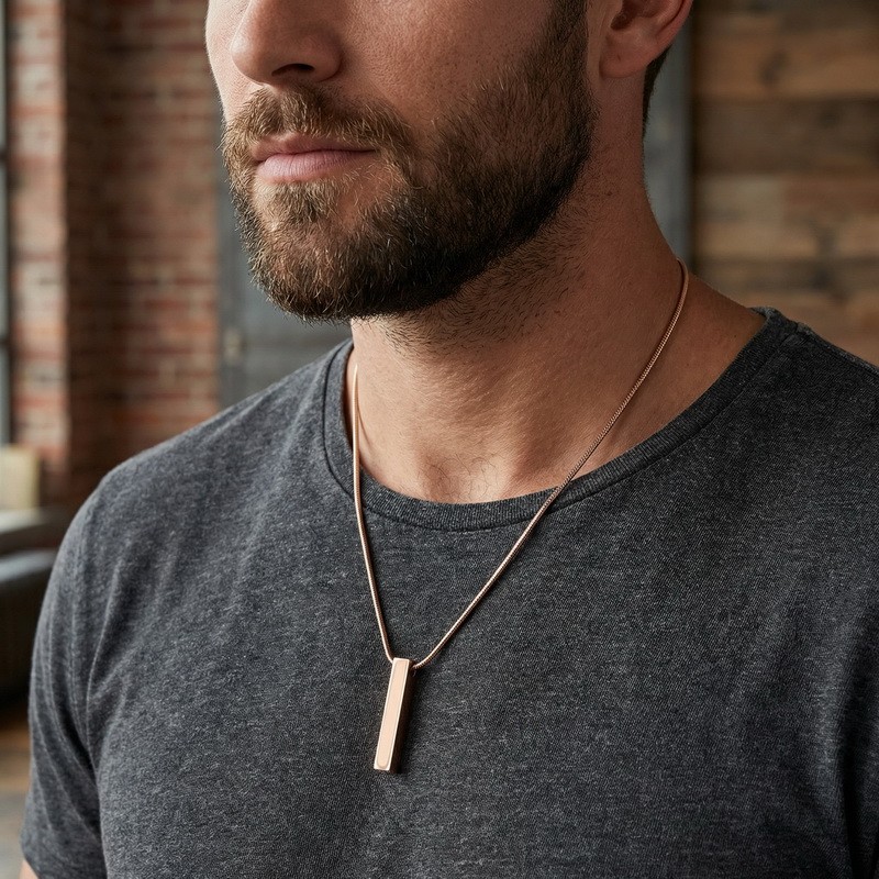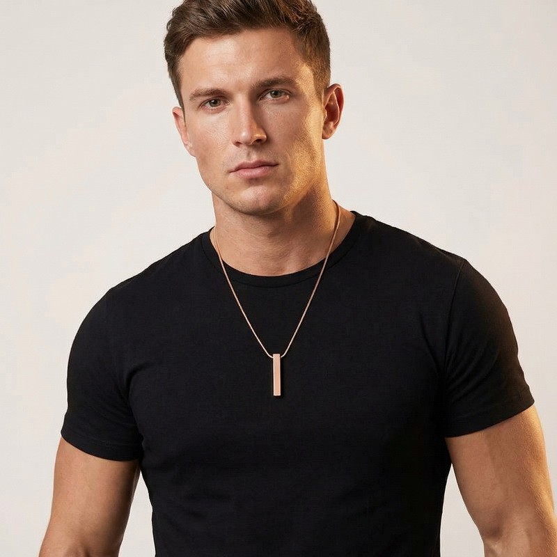 - European and American fashion personality stainless steel snake bone chain hanging smooth straight line pendant charm rose gold couple necklace