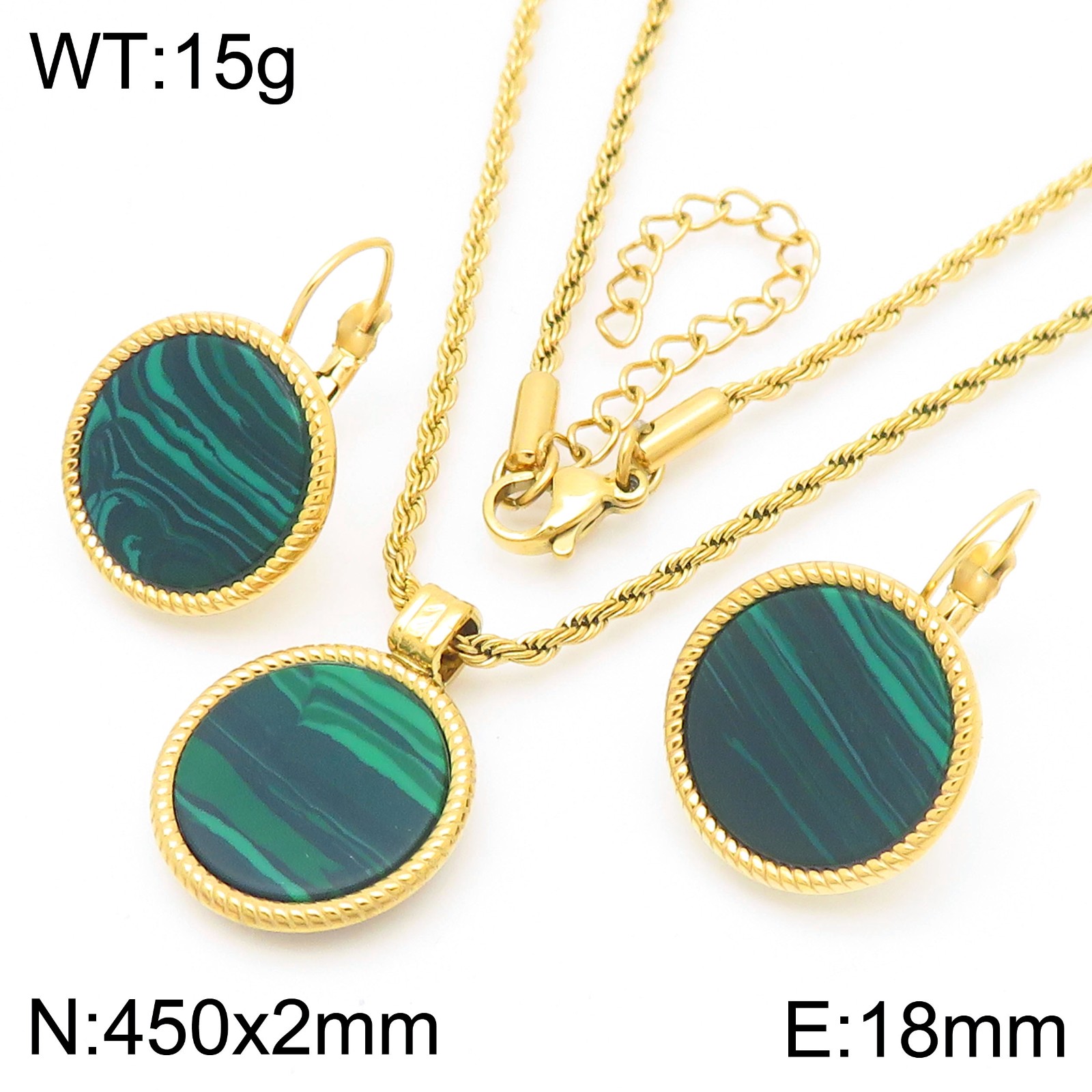 - Simple and high-end stainless steel circular geometric pendant necklace earrings two-piece set