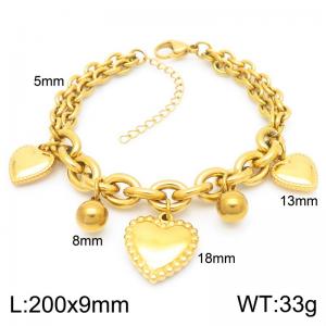 - Fashion Jewelry Double Layers Stainless Steel Bead Bracelets Heart Charm Bracelet Link Chain