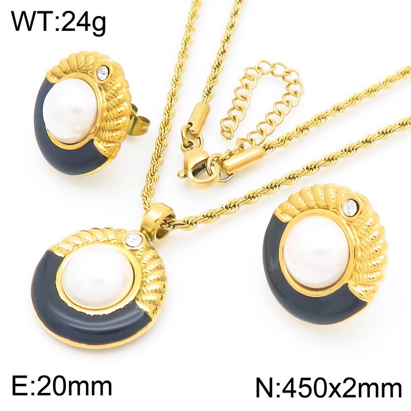 Round Shell Beads Pendant Jewelrry Sets for Women Stainless Steel Necklace EarringsWholesale Price: