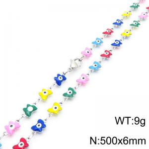 - Fashionable Ins style stainless steel colorful butterfly shaped devil's eye splicing necklace 55cm