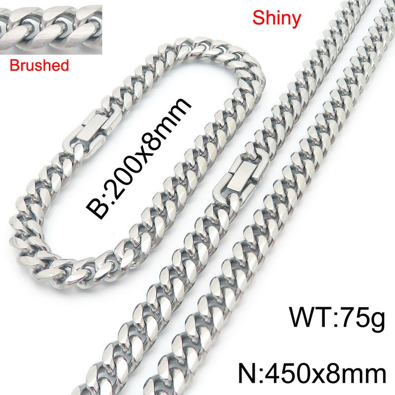 Fashionable and minimalist stainless steel jewelry buckle round ground Cuban bracelet necklace two-piece setWholesale Price: