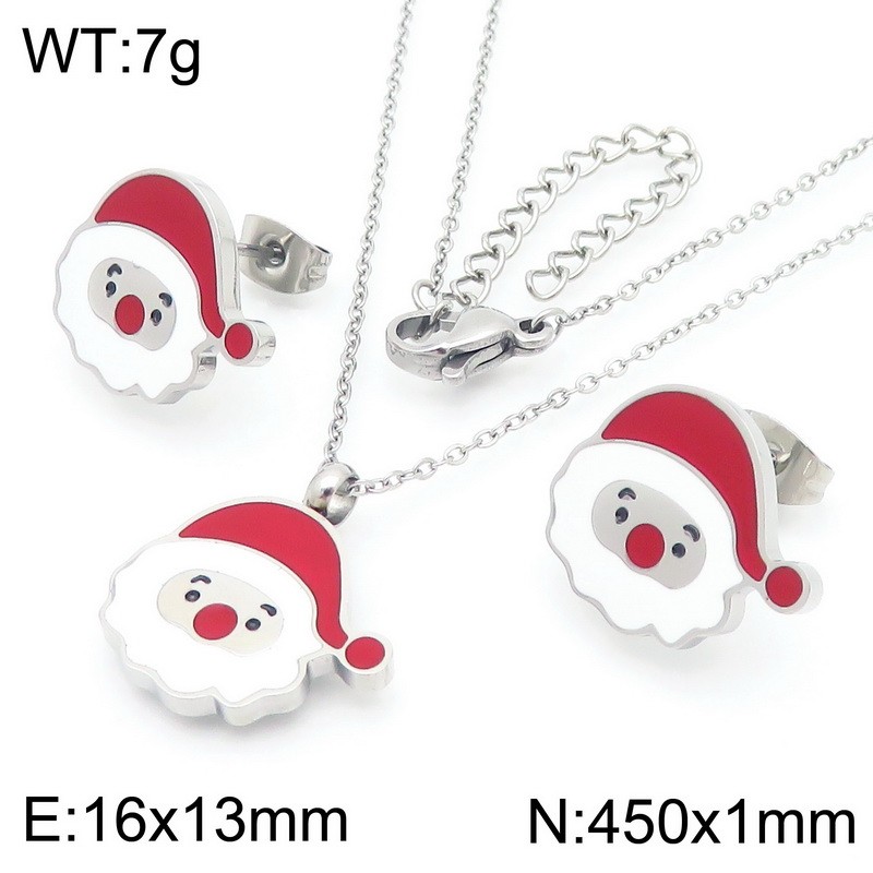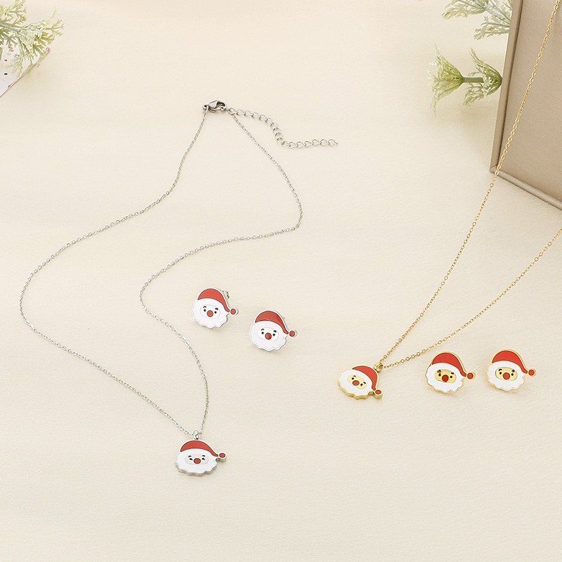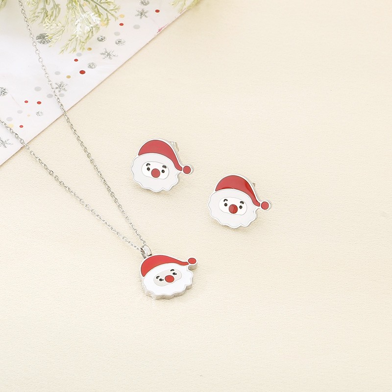 Christmas Santa Claus Stainless Steel Necklace Earings For Women Girl Gold Silver Color 2-Piece SetWholesale Price: