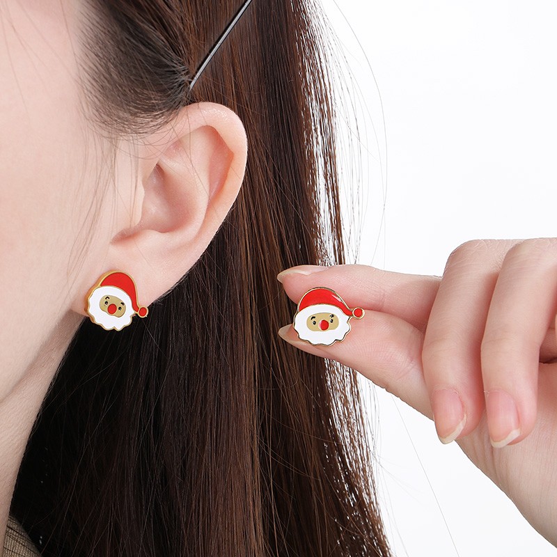 Christmas Santa Claus Stainless Steel Earings For Women Girl Cute Gold Silver Color Jewelry Christmas Gift