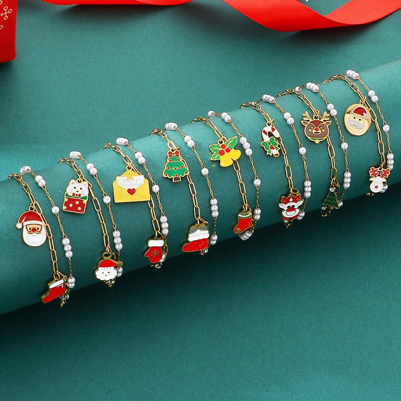 Stainless Steel Gold-plating Christmas Snowman Boots Christmas Tree BraceletWholesale Price: