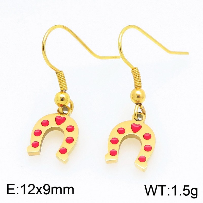 - Stainless steel Horseshoe shaped heart-shaped dripping oil earrings for ladies as decoration gifts