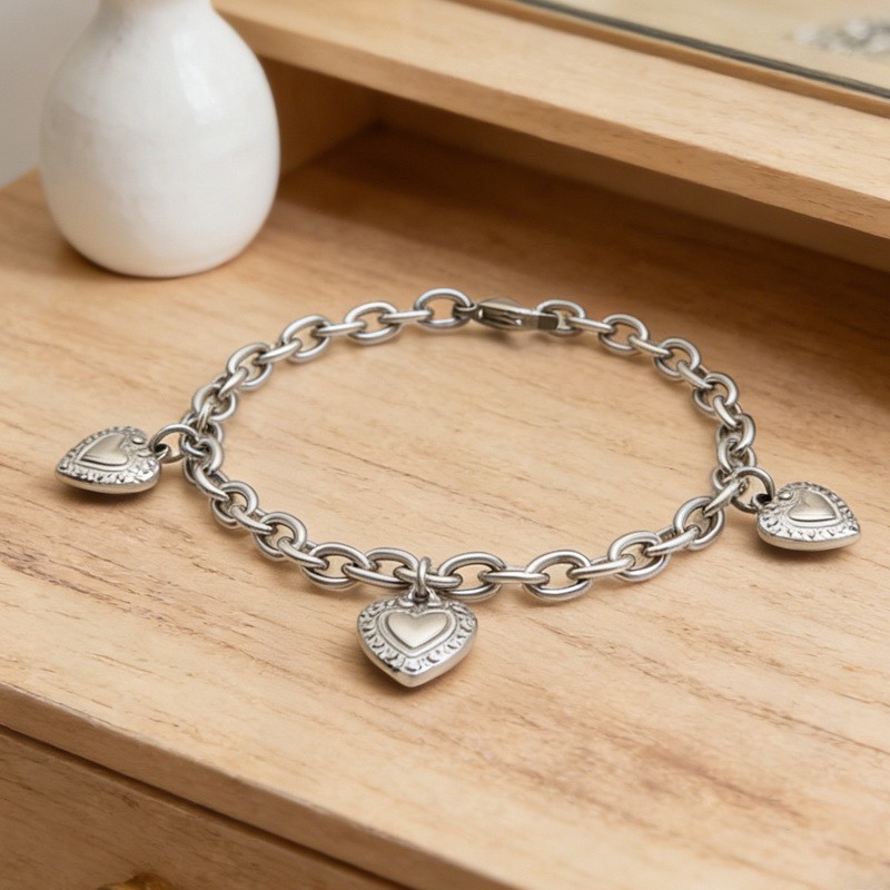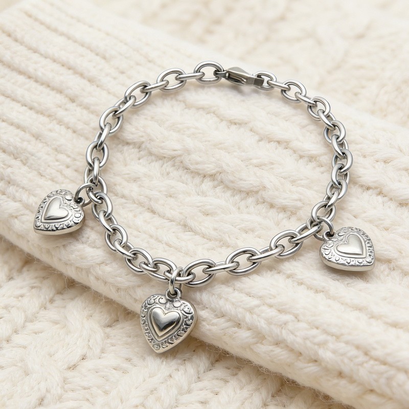 Steel-colored stainless steel heart pattern accessory DIY Valentine's Day women's bracelet