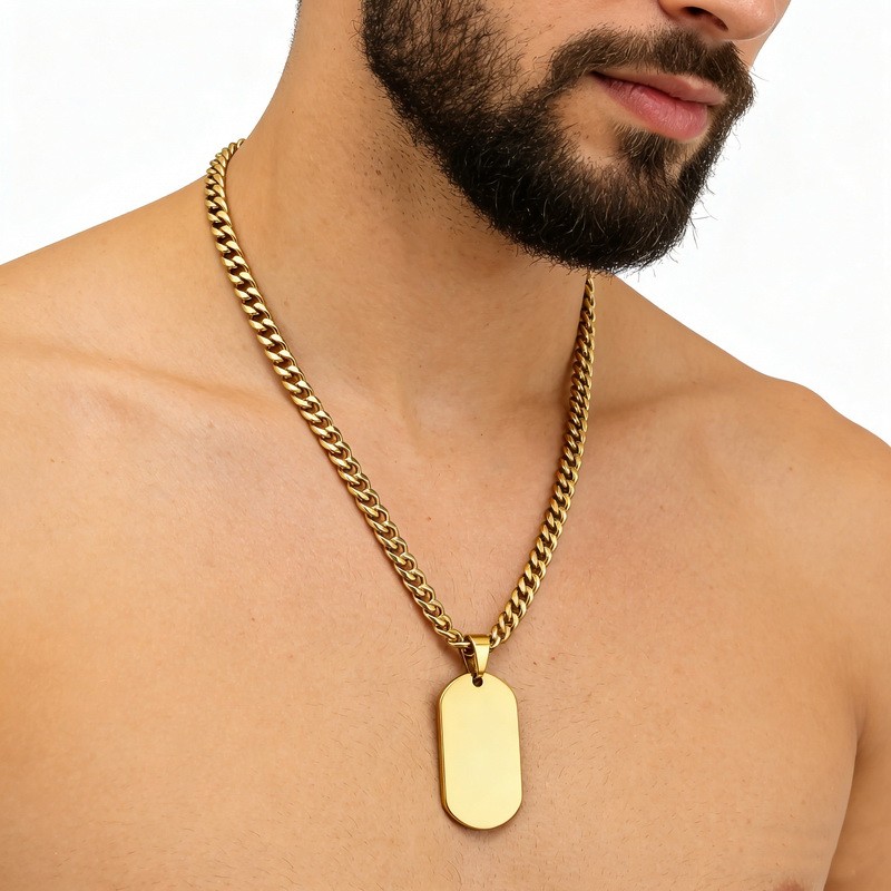 - Stainless Steel Military Dog Tag Pendant Necklace