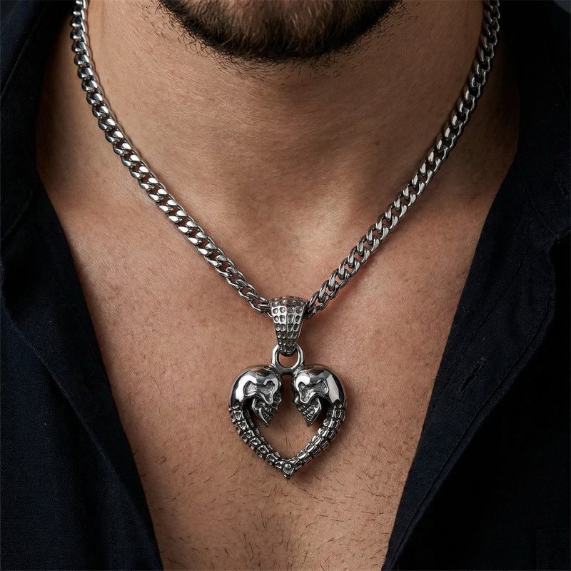 - Punk style creative love skull men's stainless steel pendant