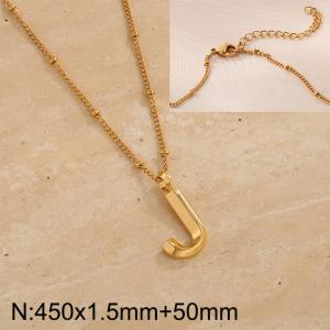 Stainless steel snake bone chain hanging square plaque carving letter J pendant jewelry charm silver necklaceKN293410-ZWholesale Price: