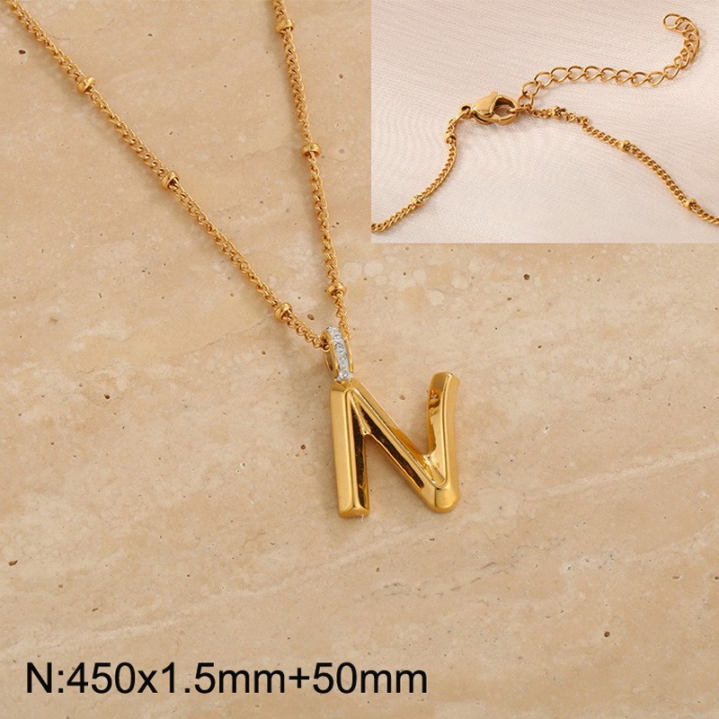 Stainless steel snake bone chain hanging square plaque carving letter N pendant jewelry charm gold necklaceKN293440-ZWholesale Price: