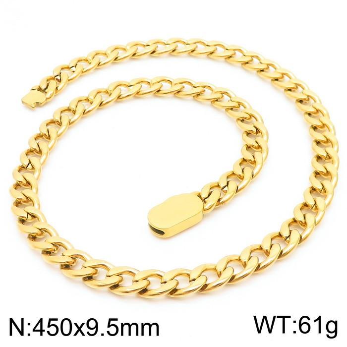 9mm Stainless Steel Cuban Chain Necklace For Men And Women Gold Color Shiny JewelryKN231622-ZWholesale Price: