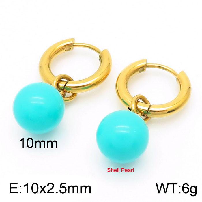 10mm Blue Shell Pearl Gold Color Earrings For Women Stainless SteelKE108035-ZWholesale Price: