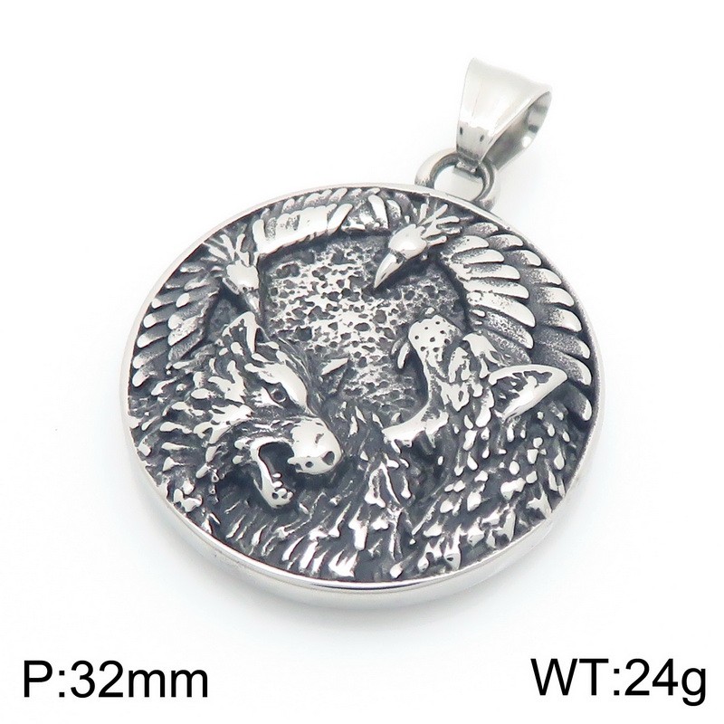 Stainless Steel Nordic Viking Wolf Head Mighty Retro Animal Men's Pendant Black-plating PendantKP83341-BDJXWholesale Price: U$4