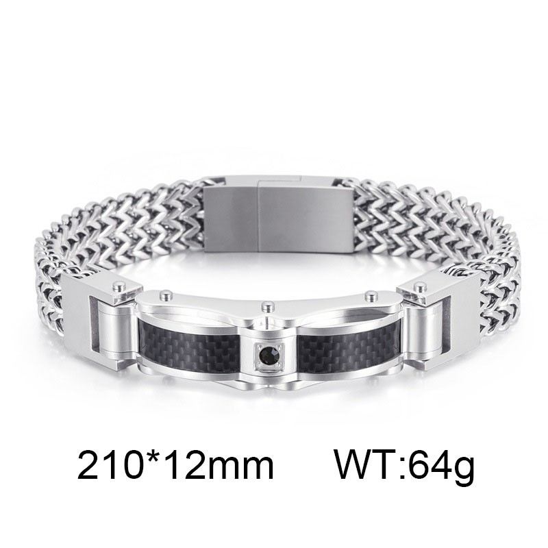 Fashion Creative Chain New Stainless Steel Men's Diamond Inlaid Carbon Fiber Magnetic Buckle BraceletKB116156-KHY-190Wholesale Price: