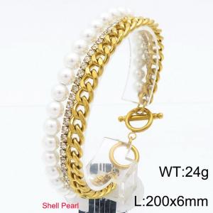 Stainless Steel Crystal Shell Pearl Chain 3 Links Bracelet For Women Gold Color Trend JewelryKB188528-ZWholesale Price: