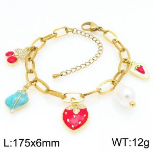 Stainless Steel Gold-plating Fruit Strawberry Cherry Lemon Countryside BraceletKB203066-ZWholesale Price: