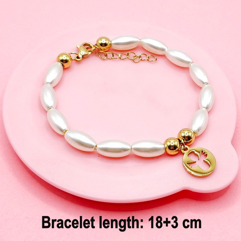 Stainless steel heart-shaped accessory splicing oval imitation pearl bead chain lobster buckle charm gold braceletKB207123-ZZWholesale Price: