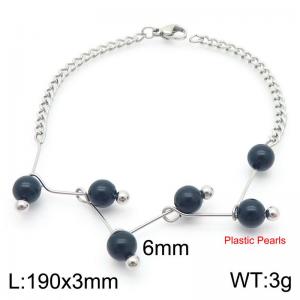 Fashion Stainless Steel Bracelet Plastic Pearls Beads Link Chain Silver ColorKB190861-ZWholesale Price: