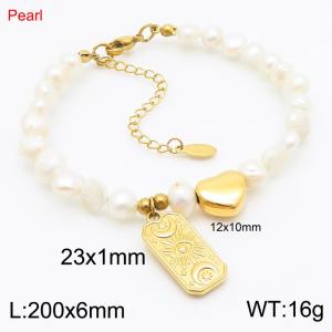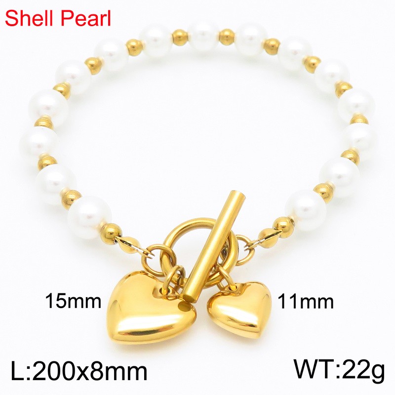 Stainless steel heart-shaped accessory splicing oval imitation pearl bead chain lobster buckle charm gold braceletKB207123-ZZWholesale Price: