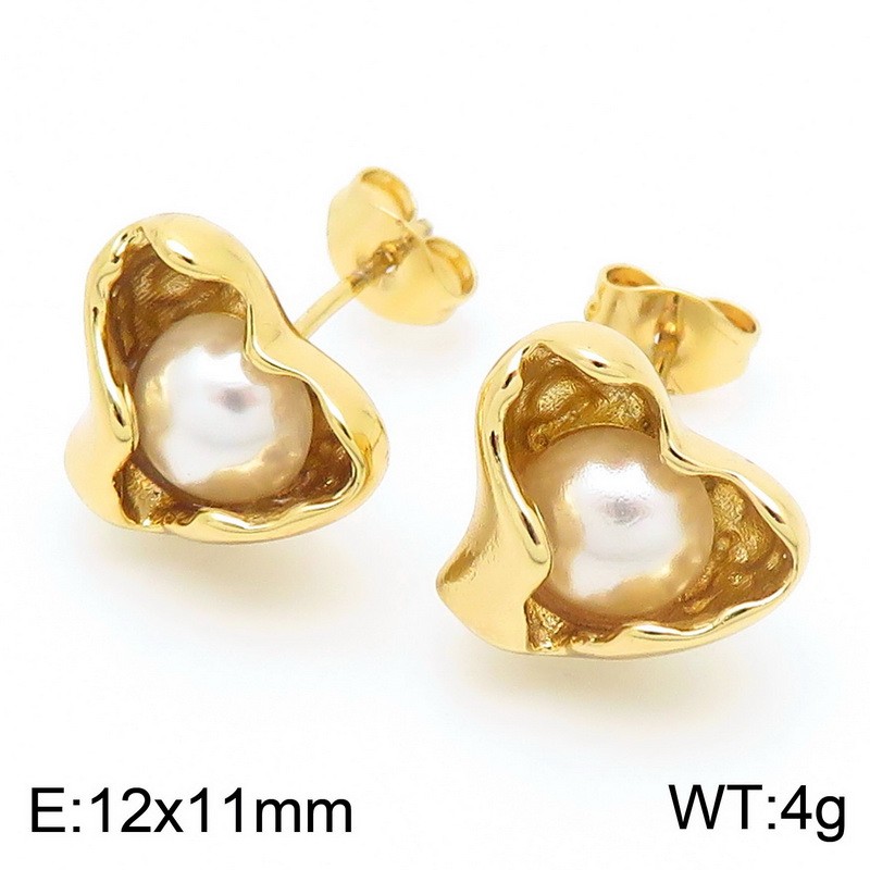 European and American fashion personality stainless steel creative heart-shaped shell pearl jewelry temperament gold earringsKE117753-GCWholesale Price: