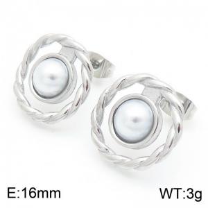 Silver Color Shell Imitation Pearl Spiral Whirlwind Shape Stainless Steel Stud Earrings For WomenKE116194-KFCWholesale Price: