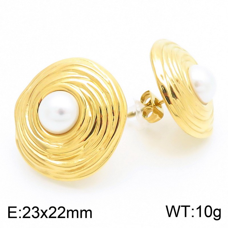 French style fashionable personalized stainless steel creative circular inlaid pearl temperament gold earringsKE116514-KFCWholesale Price: