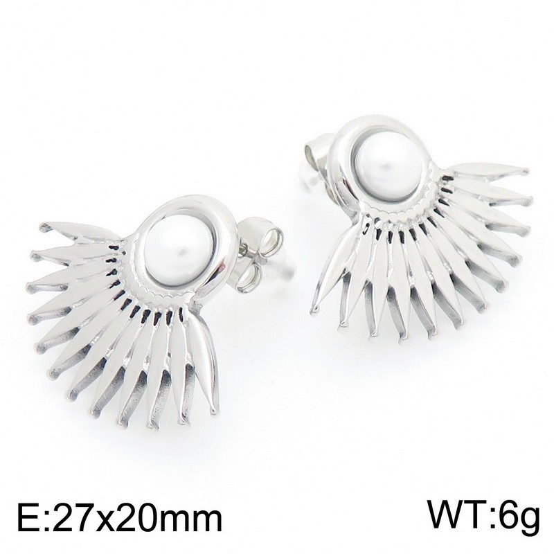 French court style retro personality stainless steel round inlaid pearl shell jewelry temperament silver earringsKE116083-KFCWholesale Price:
