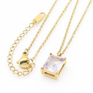 20mm Square Purple Zircon Pendant Necklace Stainless Steel Gold Geometry Charm Necklace With 50cm ChainKN292791-GCWholesale Price: