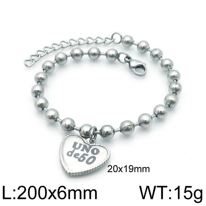6mm Bead Chain Bracelet Women Stainless Steel 304 With Heart-Shaped Charm Bracelet Silver ColorKB163888-ZWholesale Price: