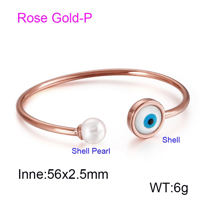 Round stainless steel Devil's Eye Shell Pearl Rose Gold-plating BangleKB123060-KWholesale Price: