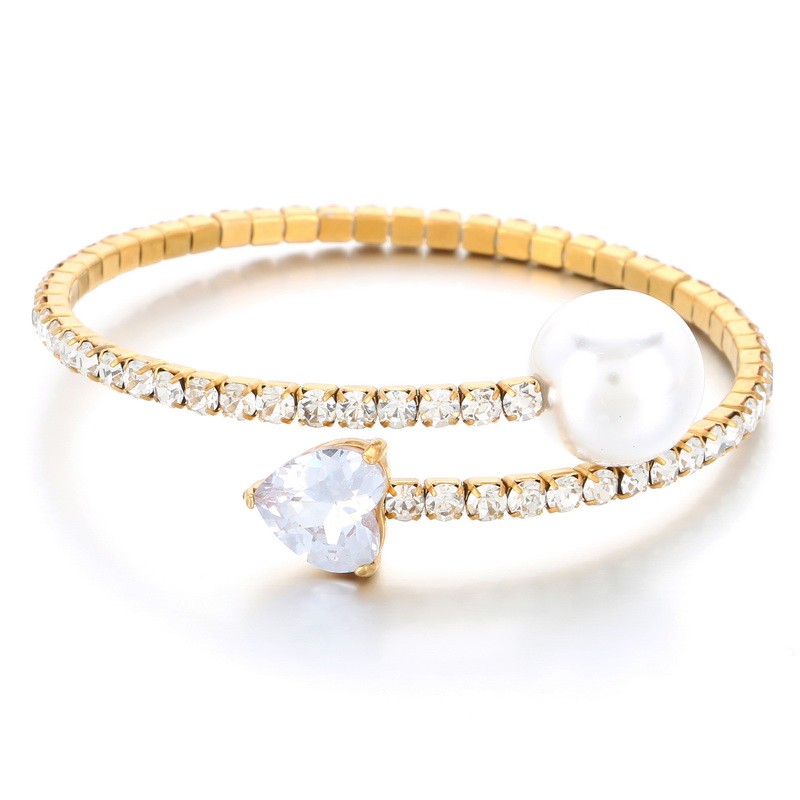 StainlesChristmas Snowflake Pearl Stretch Via Wire BangleKB114930-KFCWholesale Price: