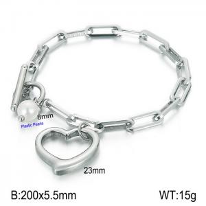 Stainless Steel Link Chain Bracelet With Heart Penant Silver ColorKB189262-ZWholesale Price: