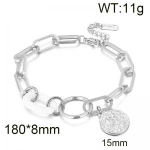 Fashion Stainless Steel Bracelet Beads Link Chain With Big Round Pendant Silver ColorKB190837-ZWholesale Price:
