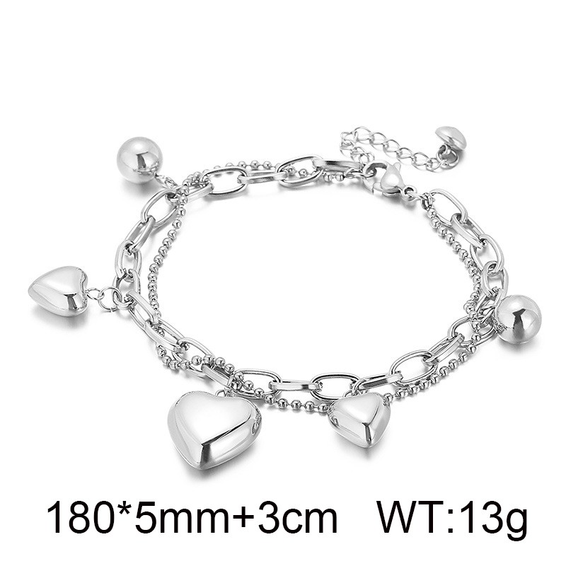 Fashion Stainless Steel Bracelet Beads Link Chain With Big Heart Pendant Silver ColorKB190847-ZWholesale Price: