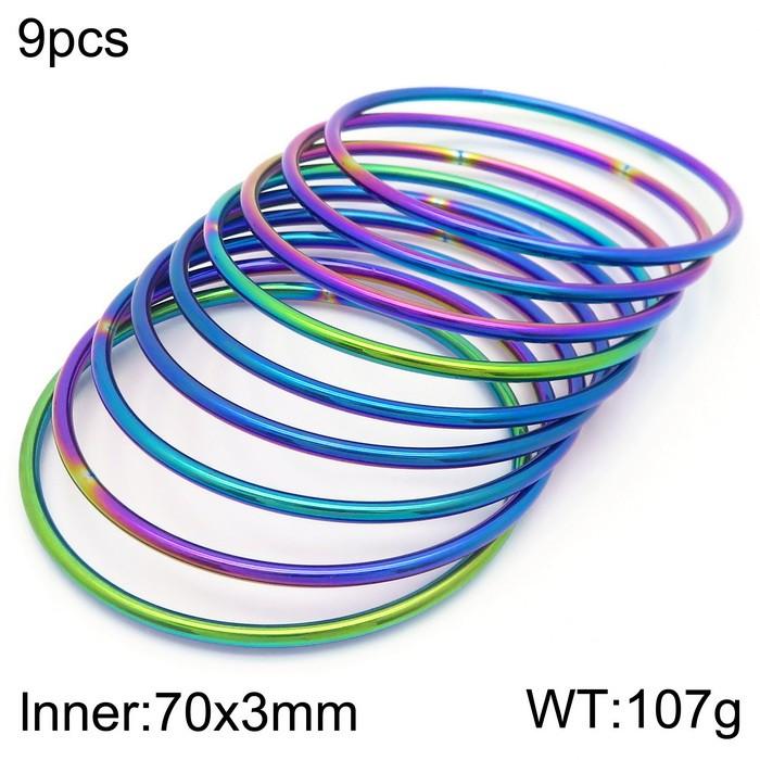 58x3mm Round Rainbow Titanium Comfortable Bracelet Stainless Steel Jewelry Bangles 9pcs A setKB190365-GCWholesale Price: