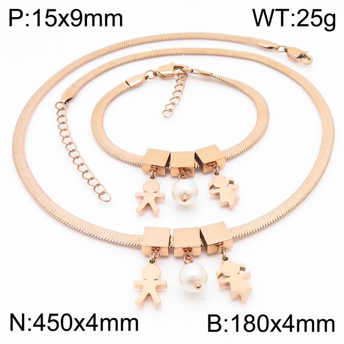 Rose Gold Color Boy And Girl Pearl Chunky Chain Stainless Steel Pendant Bracelet Necklace For Women Jewelry setsKS203089-KFCWholesale Price: