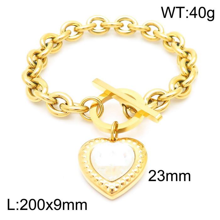 Inlaid black and white stone love pendant, stainless steel gold braceletKB182764-ZWholesale Price: