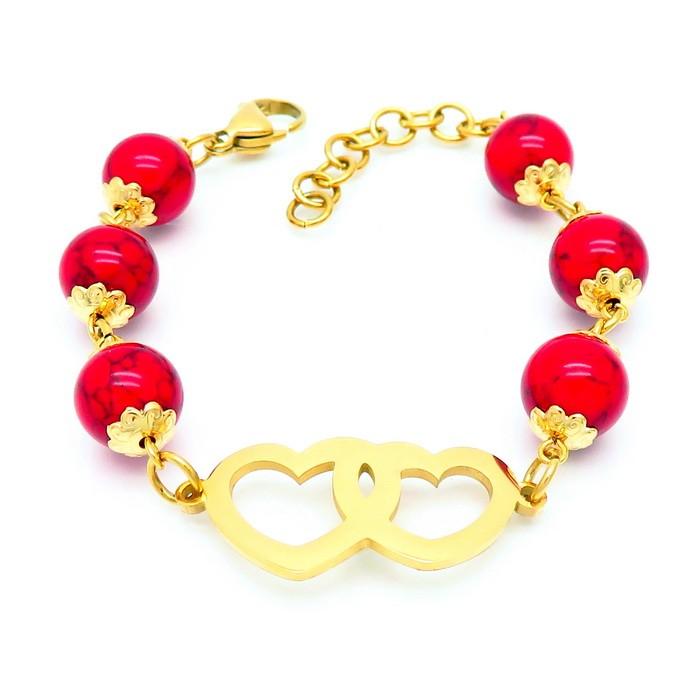 Sweet and fresh heart-shaped titanium steel golden braceletKB180798-ZWholesale Price: