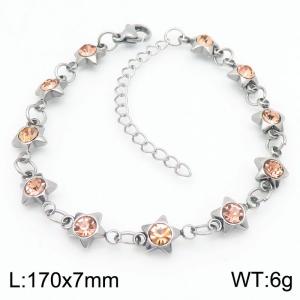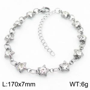 Lightweight Silver Stainless Steel Charm Bracelet With Cubic Zirconia Adjustable SizeKB169965-KLXWholesale Price: