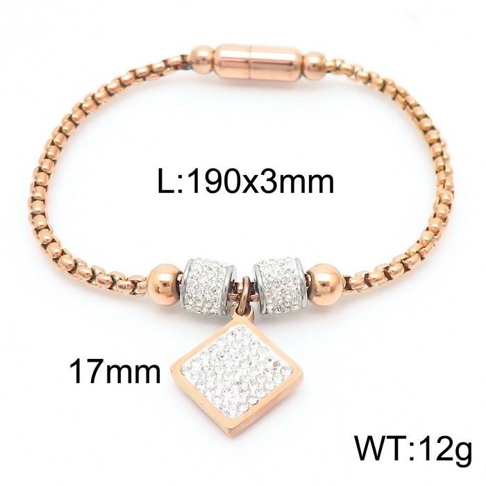Round pancake personalized popular Roman numeral bracelet with diamond inlaid hollow letters Rose Gold-plating BraceletKB148109-KLXWholesale Price: